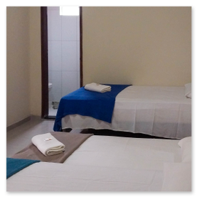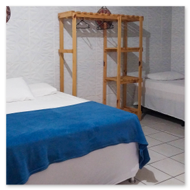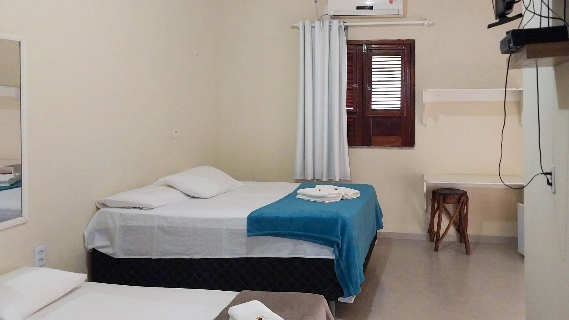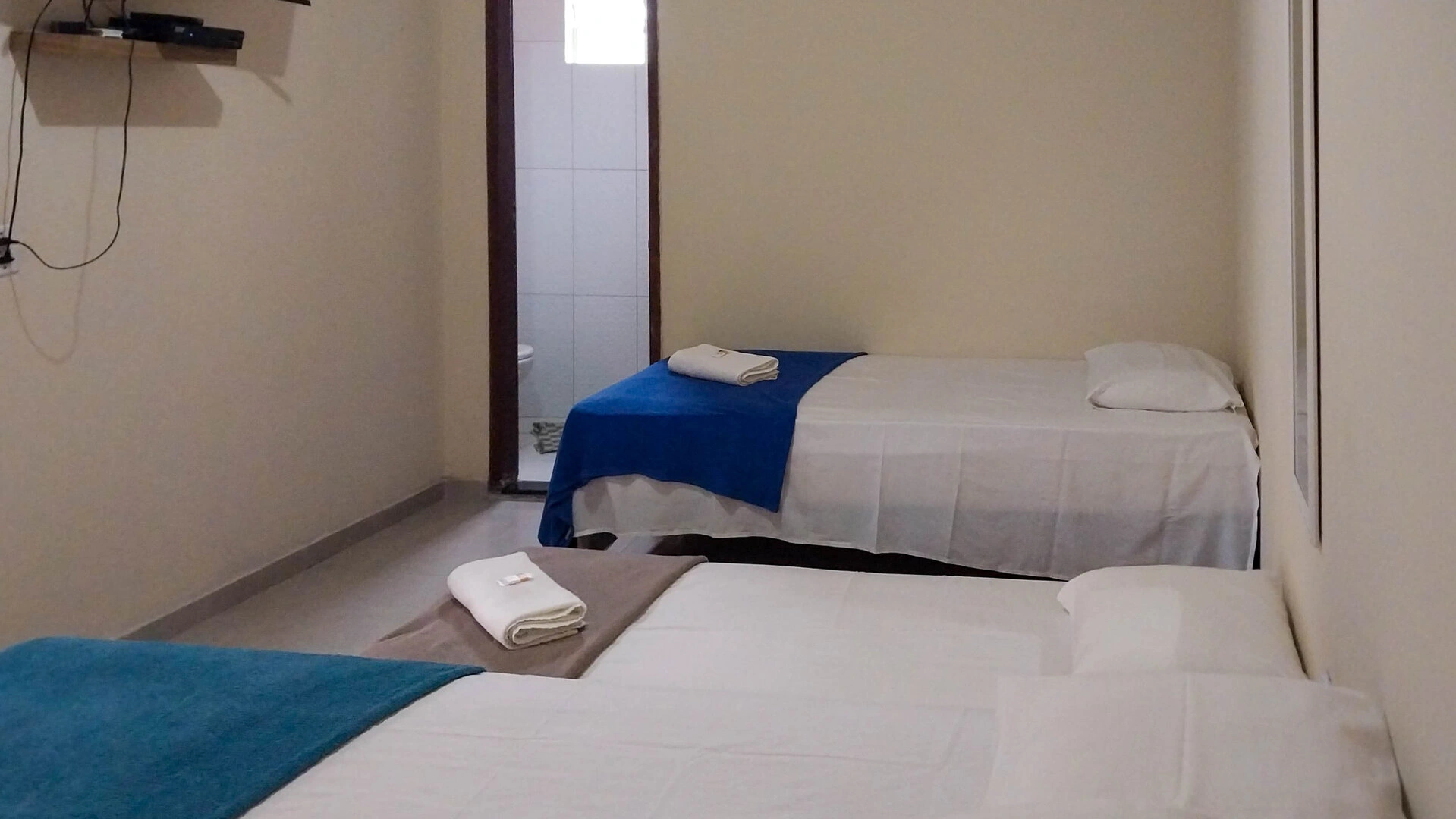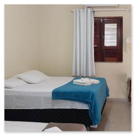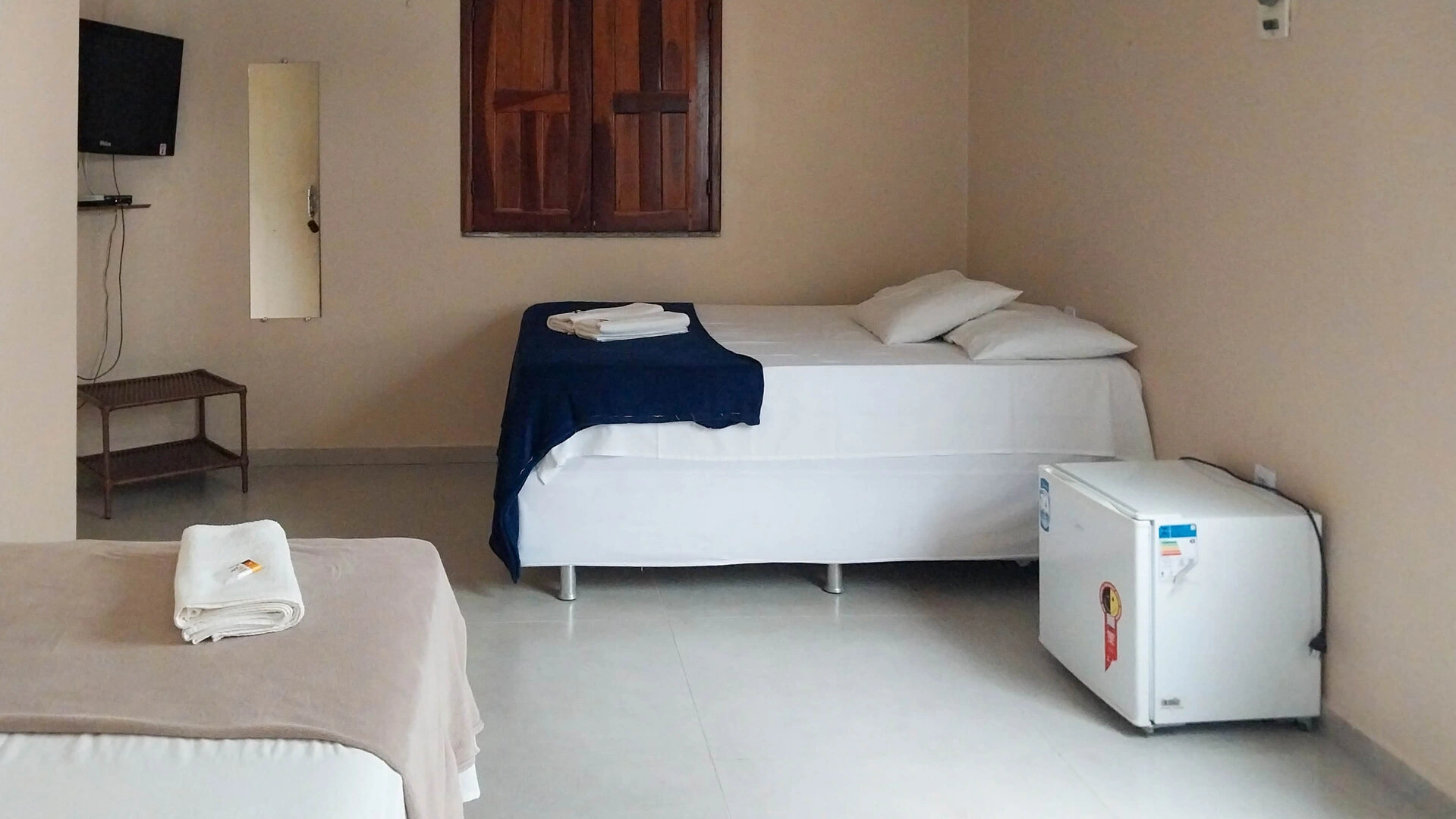Ideal para pequenas famílias ou grupos, o quarto Triplo acomoda confortavelmente até três pessoas com uma cama de casal e uma de solteiro. Conta com TV, ar-condicionado, frigobar e banheiro privativo, proporcionando uma estadia agradável e prática.