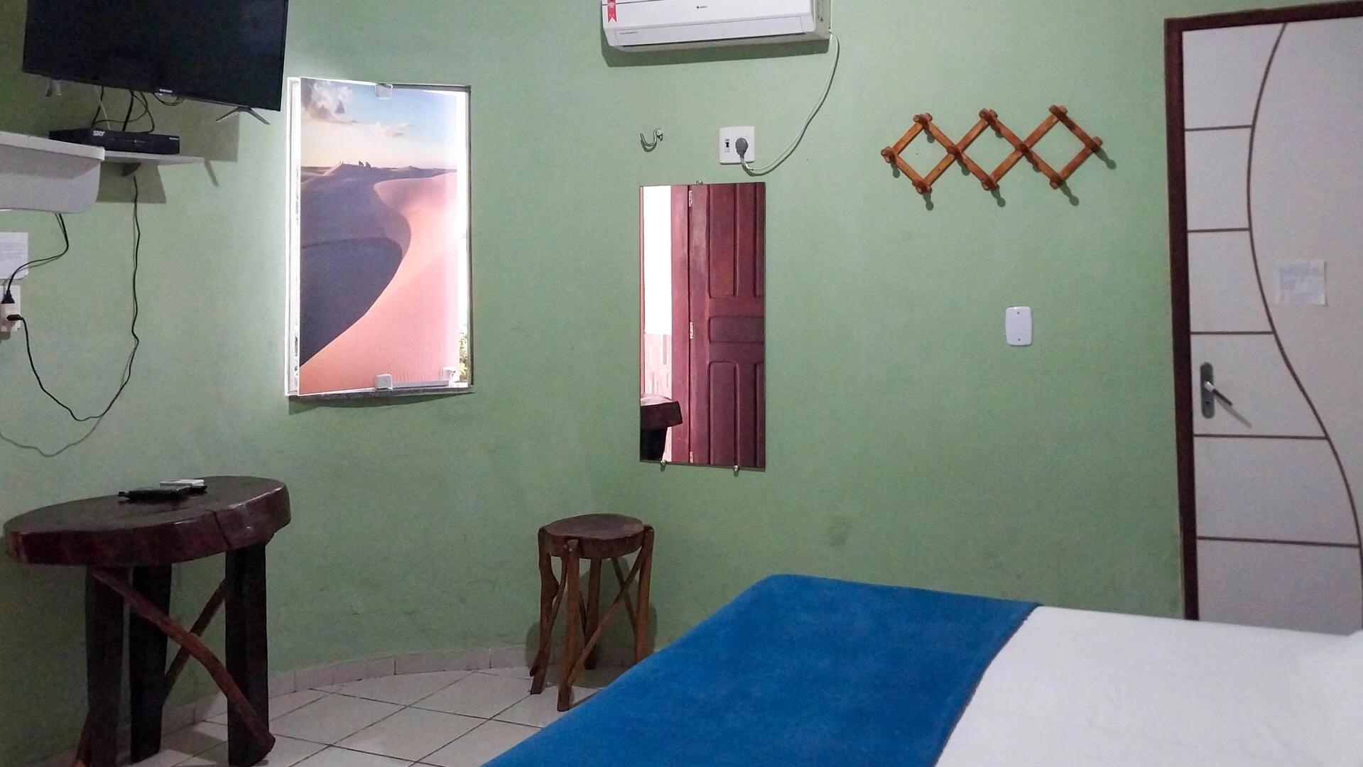 Comodidades: TV, ar-condicionado, frigobar, banheiro privativo, armário.