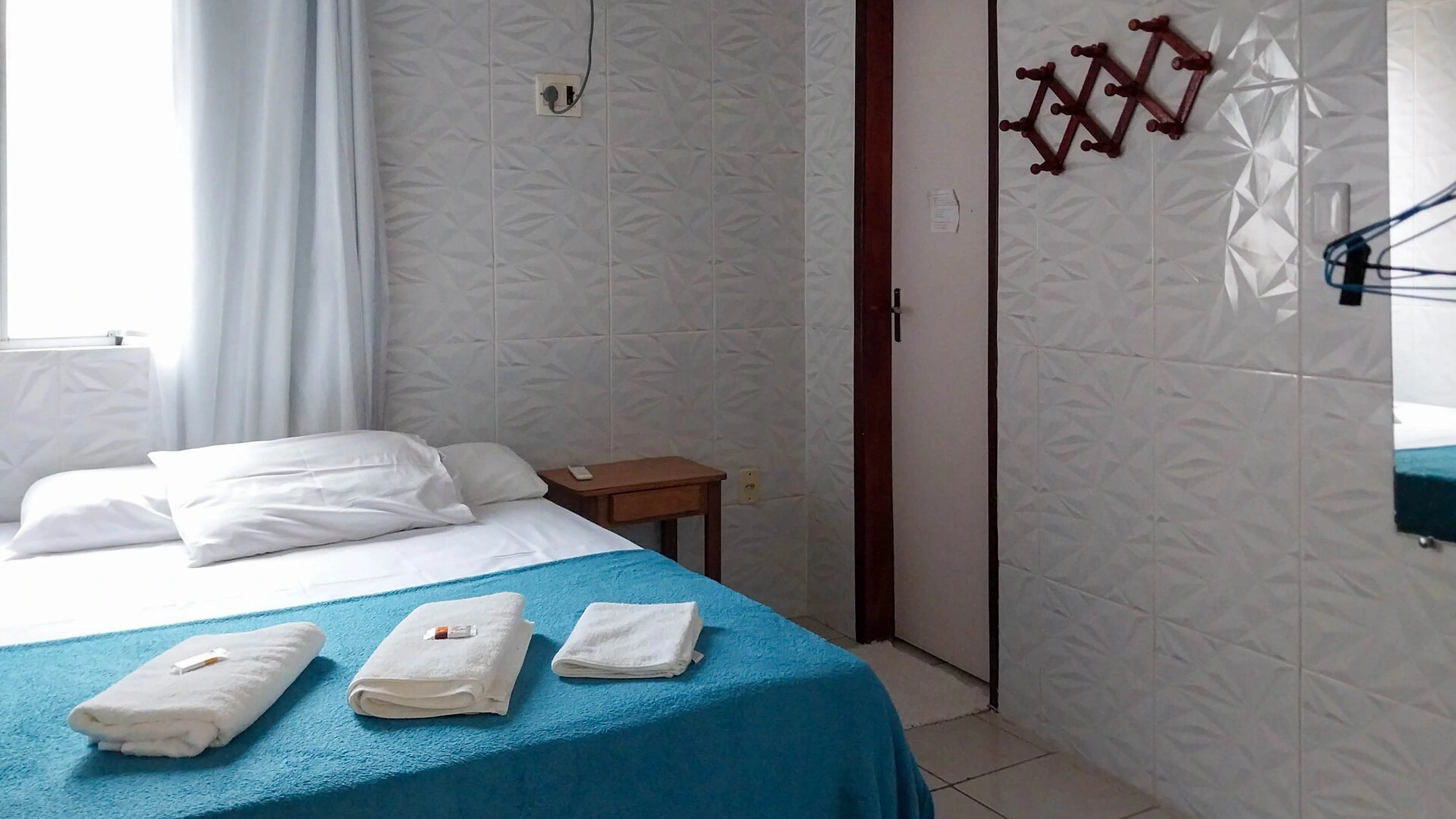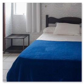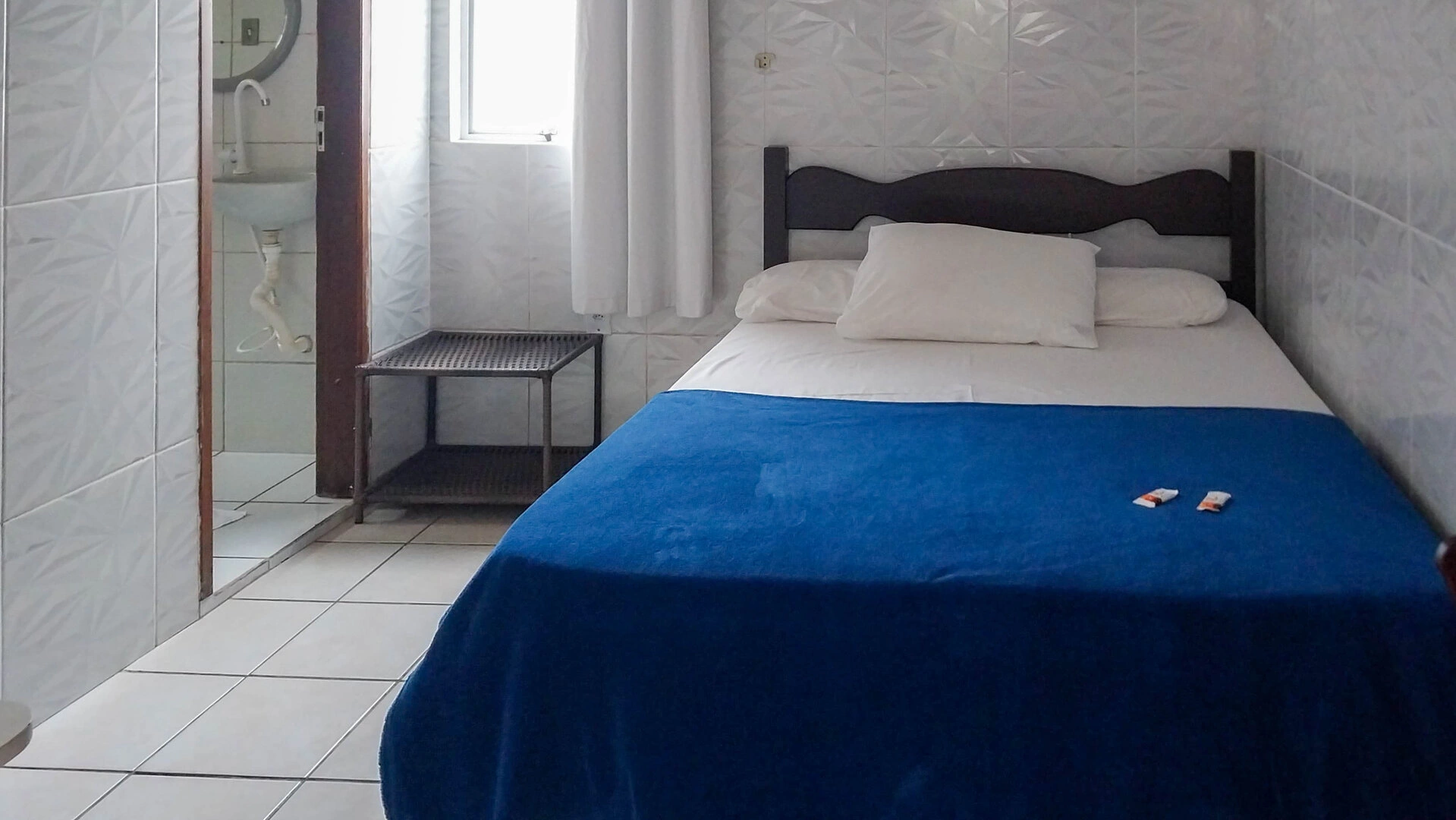 Perfeito para casais que preferem um espaço compacto e funcional, o quarto Casal Simples Pequeno oferece TV, ar-condicionado, frigobar, banheiro privativo e armário para maior organização durante a hospedagem.
