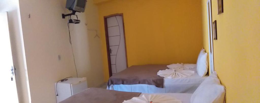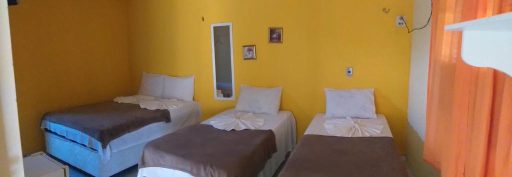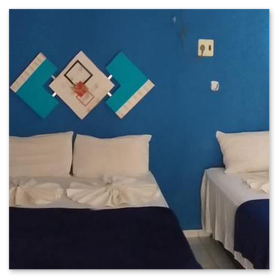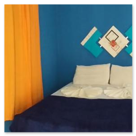 Perfeito para famílias ou grupos de amigos, o quarto Quádruplo acomoda até quatro pessoas com uma cama de casal e duas de solteiro. Equipado com TV, ar-condicionado, frigobar e banheiro privativo, este quarto oferece o espaço necessário para uma estadia confortável e completa.
